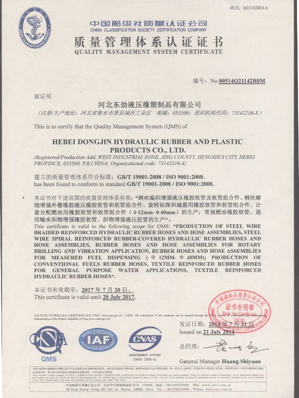 • 鋼絲編織管采用國(guó)際標(biāo)準(zhǔn)認(rèn)可認(rèn)可證書