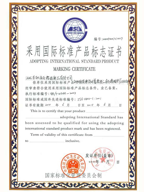 • 鋼編管國(guó)際標(biāo)準(zhǔn)產(chǎn)品標(biāo)志證書